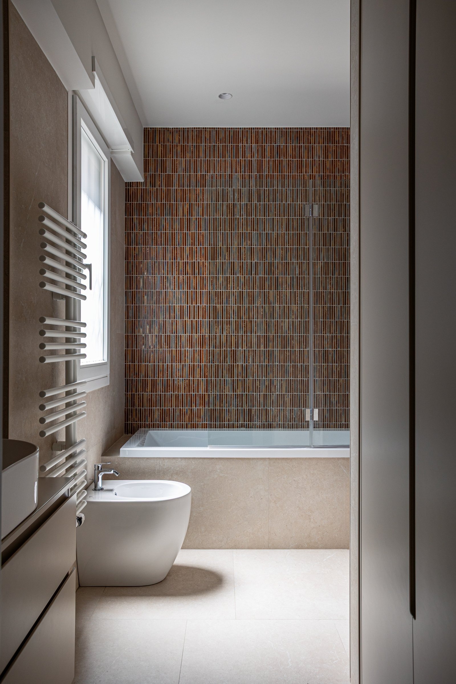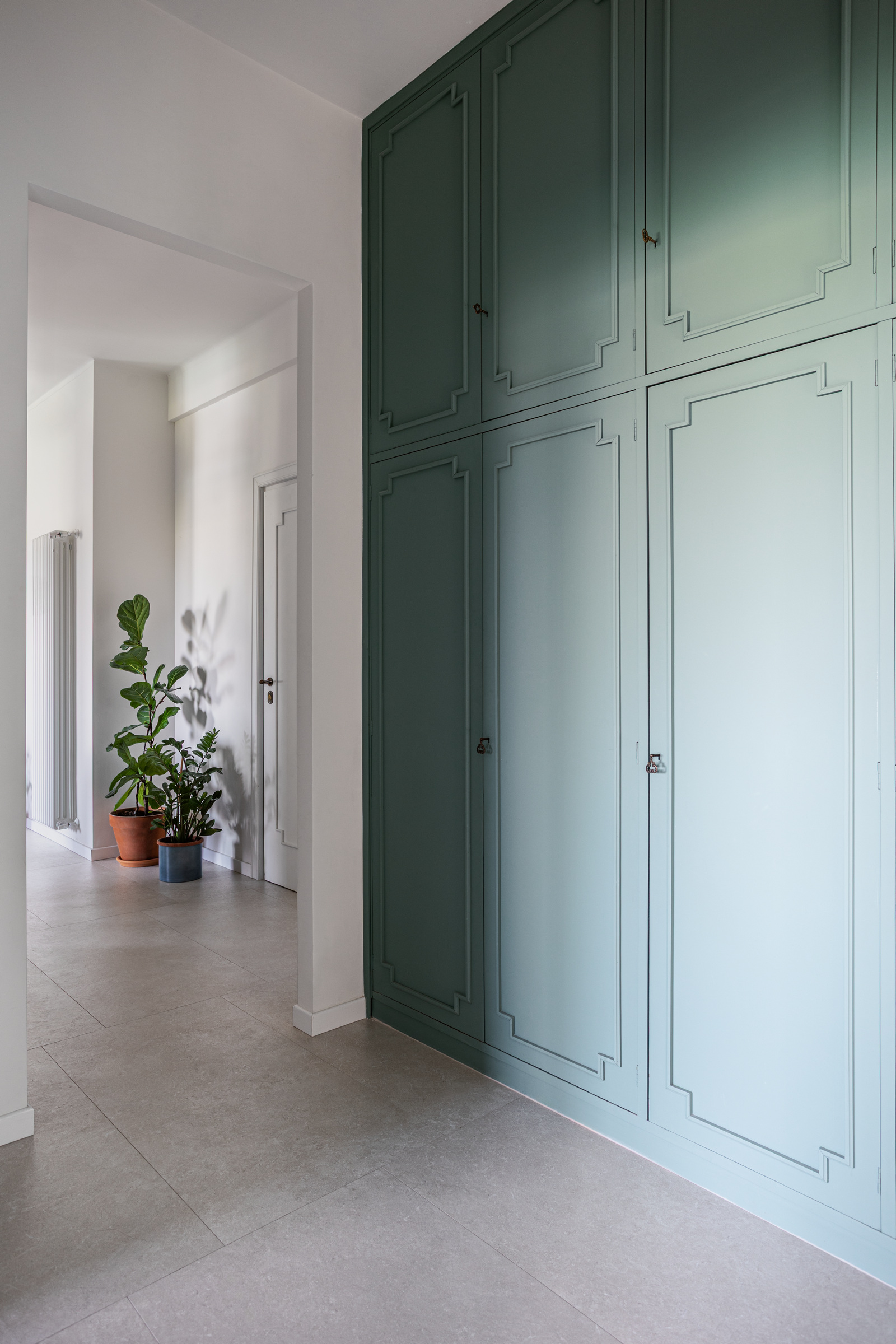 This apartment renovation in a residential neighborhood of Rome is an interior design project that weaves a visual narrative of living defined not by excess, but by balance, harmony, and comfort.