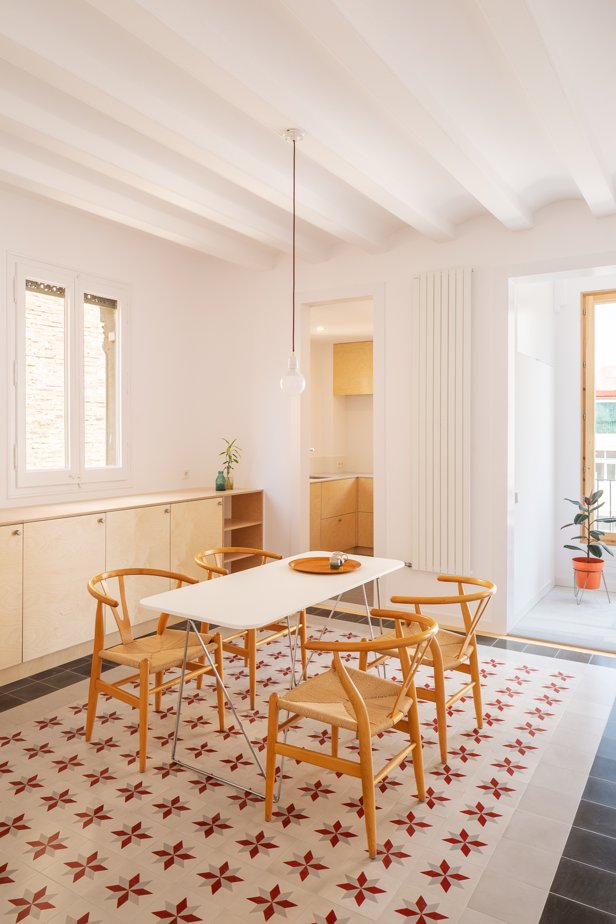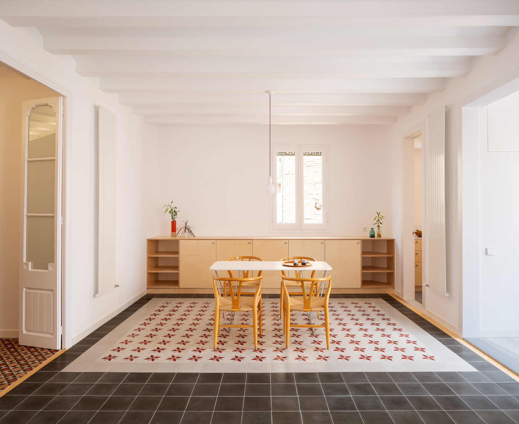 Complete renovation of an apartment in a 1903 building in the Sants neighborhood of Barcelona, designed to create a comfortable home with a clean, functional layout. The project focuses on generous spaces and natural materials, avoiding decorative effects and luxury solutions.
