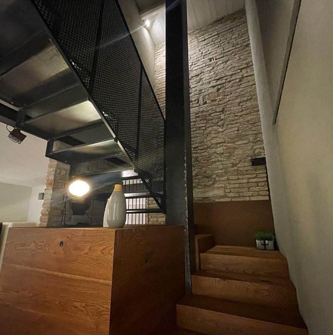 Il faretto posizionato in maniera strategica sotto la scala è un’ottima soluzione per illuminare gli ambienti.