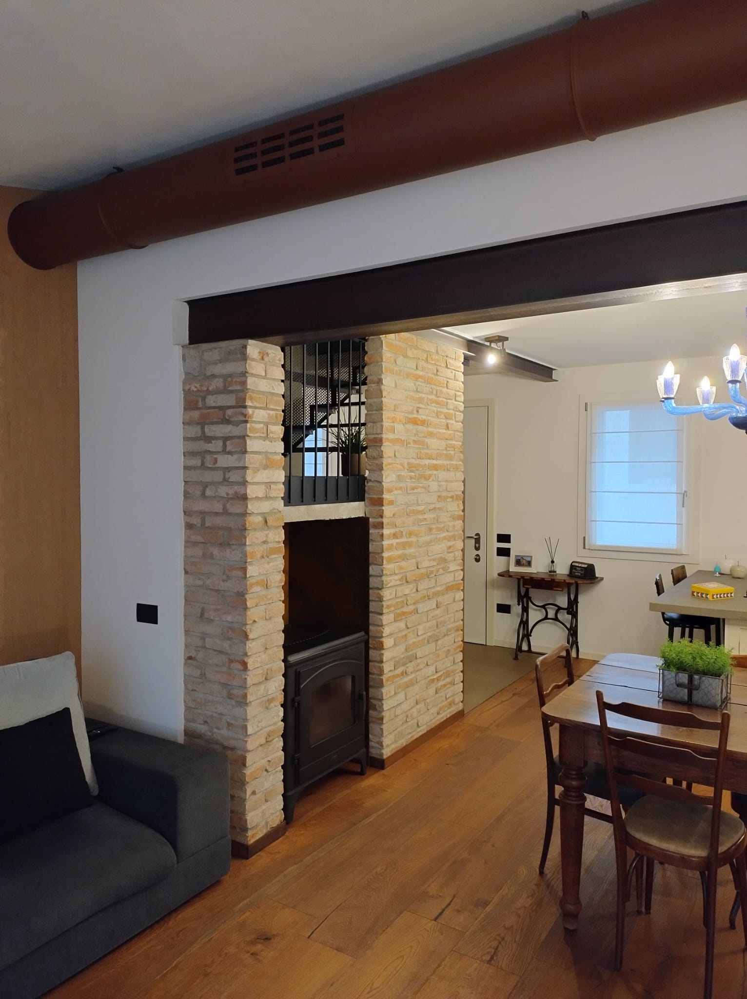 Il corten è la rivisitazione di un classico, un’idea studiata con attenzione per dare la giusta luce da restituire allo spazio. Si tratta di una soluzione perfetta nel caso di un living arredato con uno stile industrial; il ferro brunito, infatti, si sposa molto bene con il legno e la trave portante e dona all’ambiente la giusta luce e atmosfera.