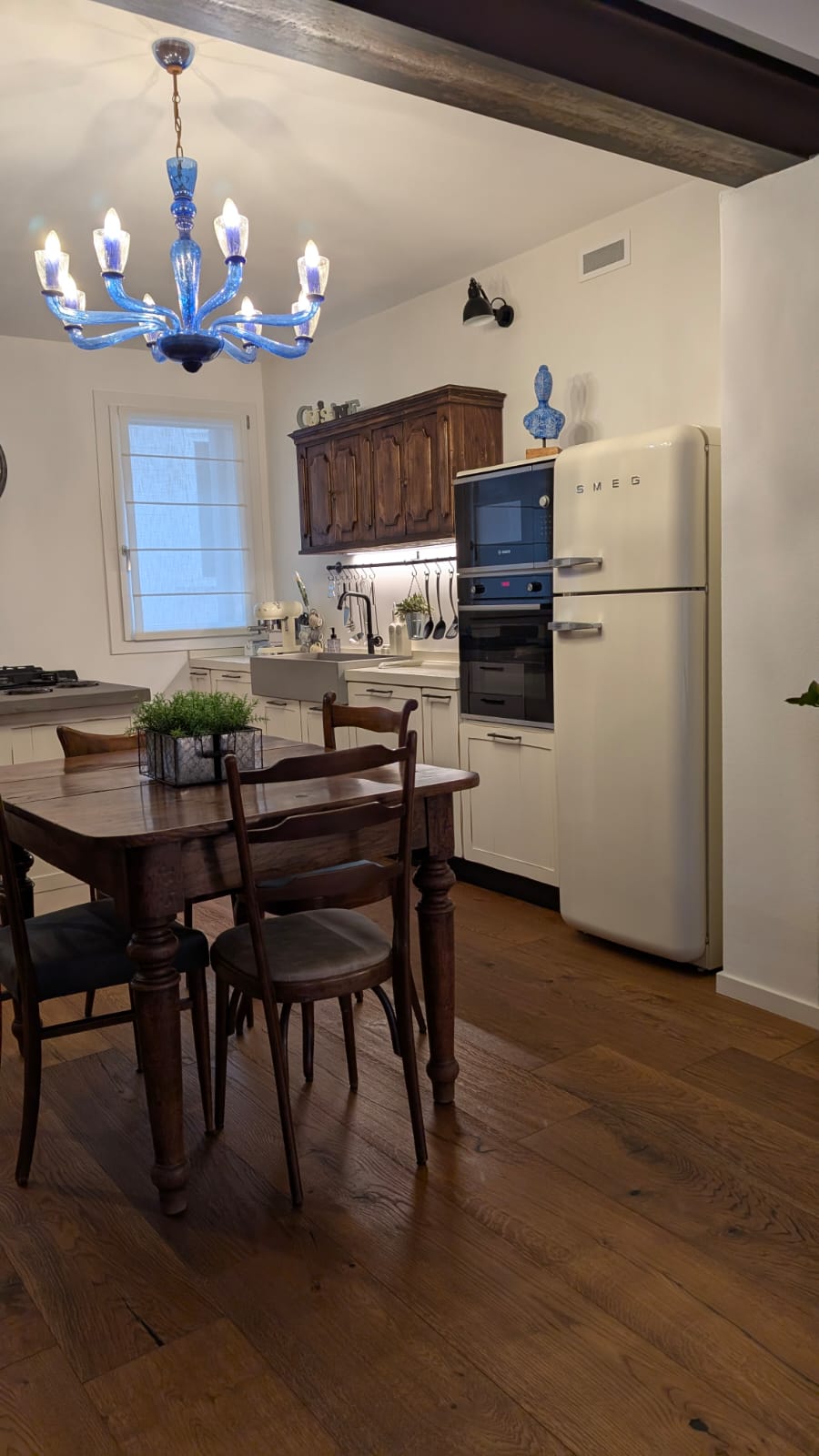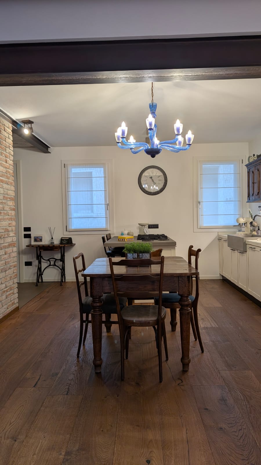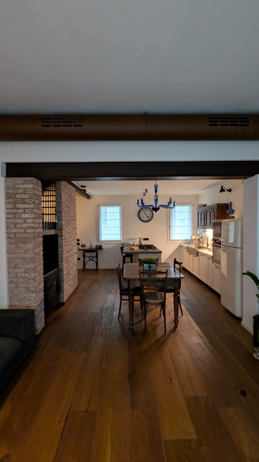 L’ampiezza della zona living è caratterizzata dall’openspace tra cucina e salotto e la trave portante è un elemento che arricchisce notevolmente il locale.