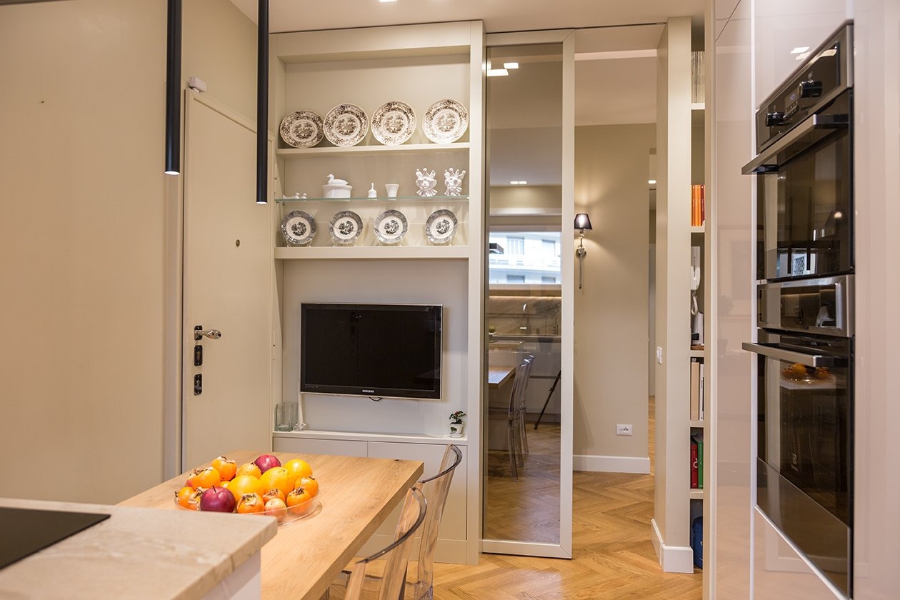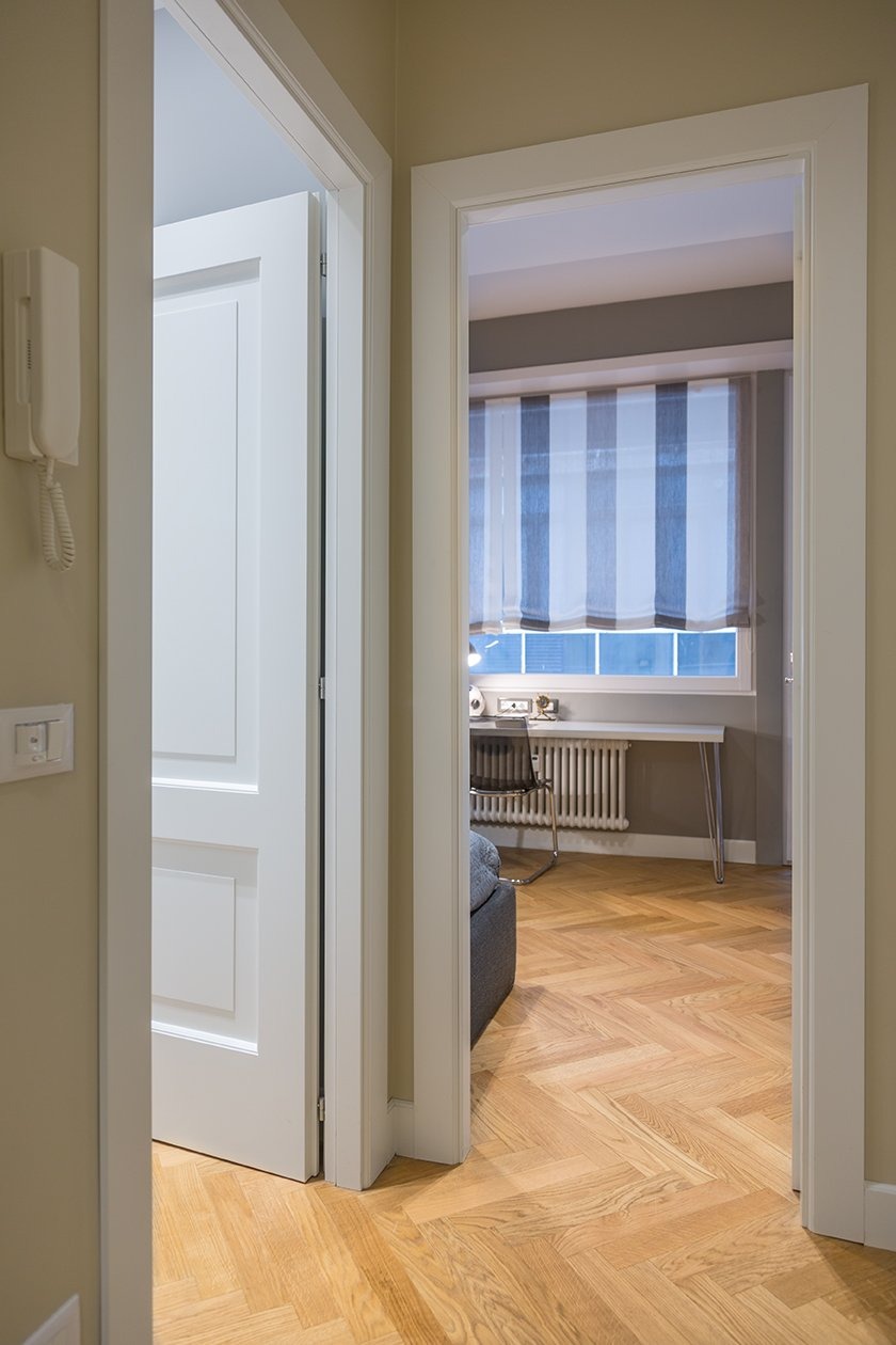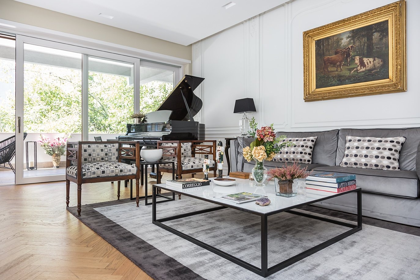 The intention was to retain the beauty of natural light and the verdant surroundings of the park in which the apartment is located.