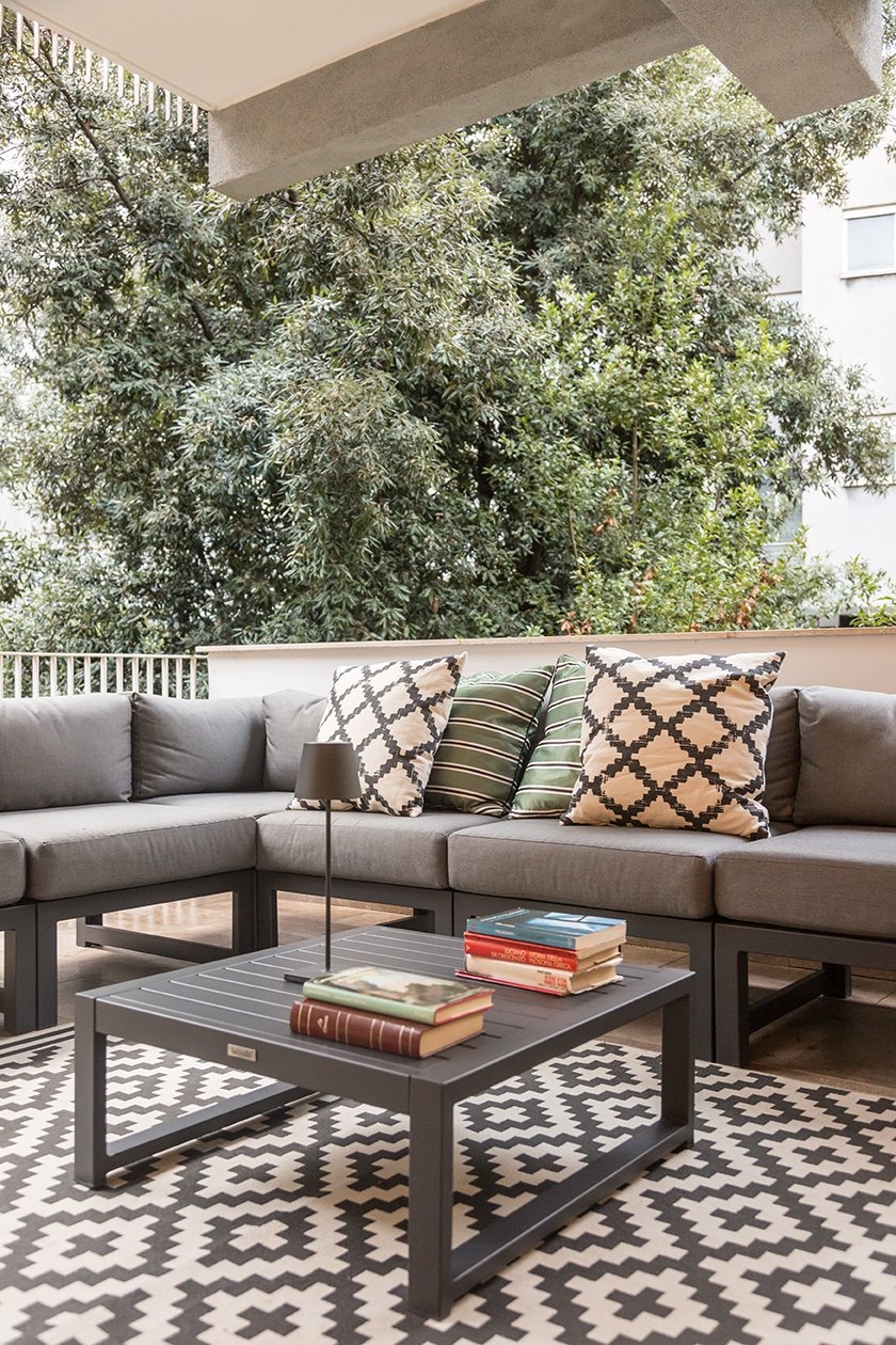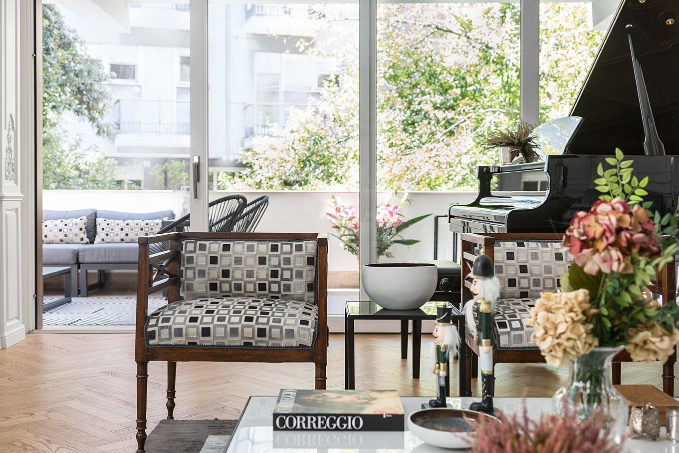 Perched atop the rooftops of Rome, this apartment harmoniously blends classic and contemporary elements. It is open yet intimate and elegant yet understated. Renovated by architect Serena Romanò, this spacious apartment strikes a careful balance between the many dimensions of domestic life. Overlooking the refined Parioli district of Rome and nestled within a lush garden, this early 20^(th)-century home is inhabited by a family of four.