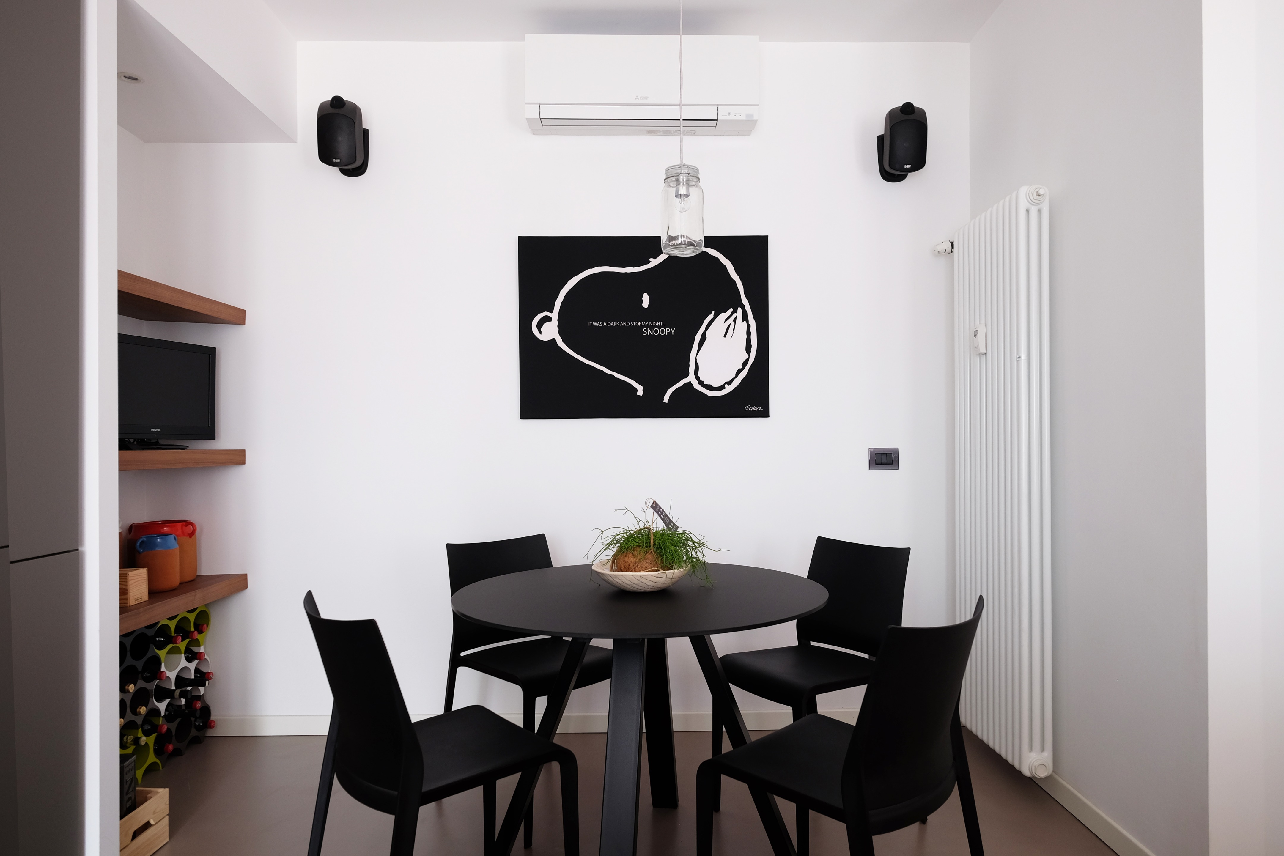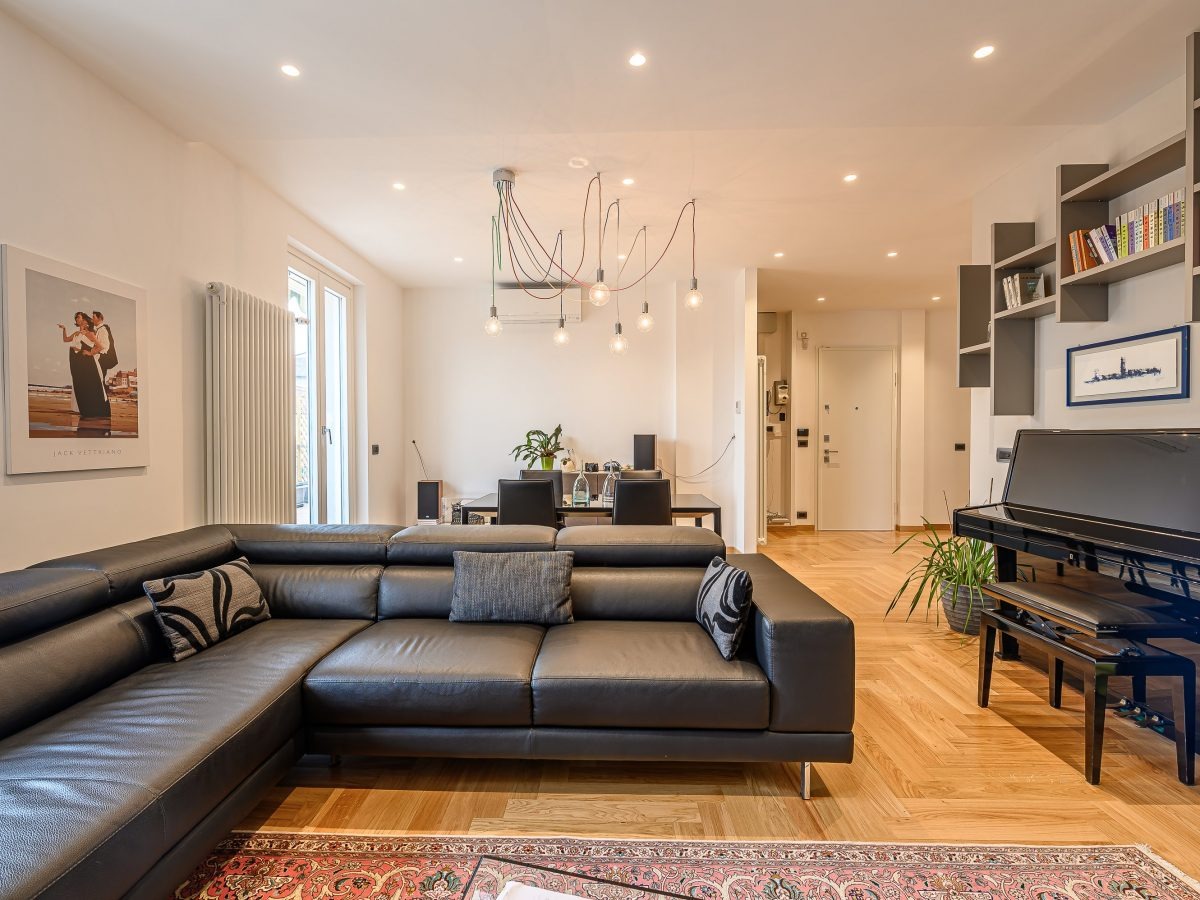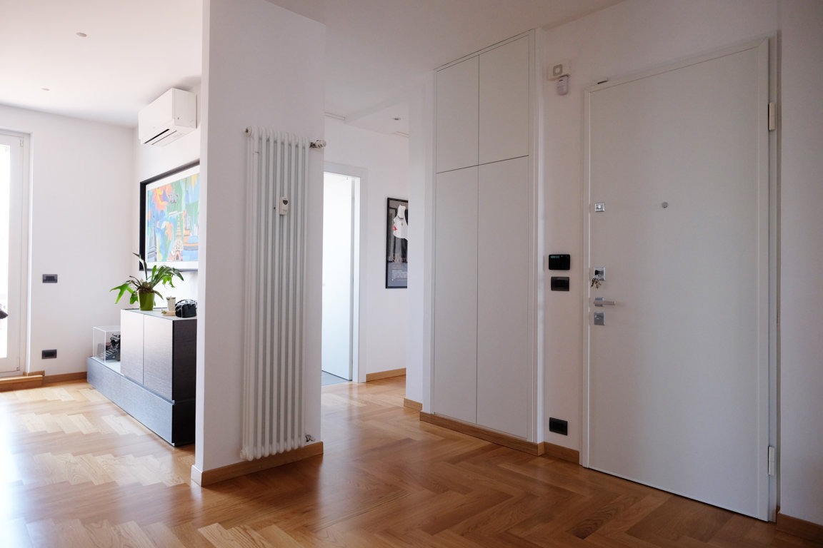 The work focused on refurbishing two adjoining units, completely rethinking the original layout in order to create open, light-filled spaces. This allowed for a clear and functional separation between the living and sleeping areas.
